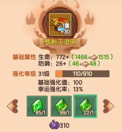 若装备强化等级达到22级,再使用1级强化石所提供的强化值只有10,性价比非常低哦。