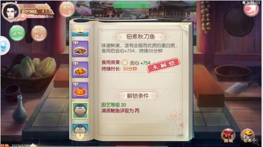 主角等级达到16级将解锁厨艺功能,我们可以在世界地图-别院-厨艺里一展身手,做出美味可口的菜。