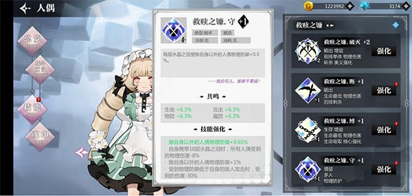2、星级强化:星级越高,人偶属性的成长值和战力越高,对应的人偶天赋解锁也就越高。