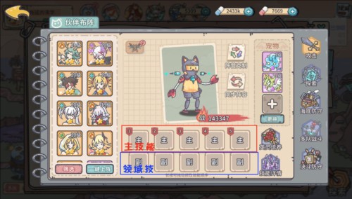 战斗的队伍由 主角+5主位英灵+5副位英灵+3宠物 组成