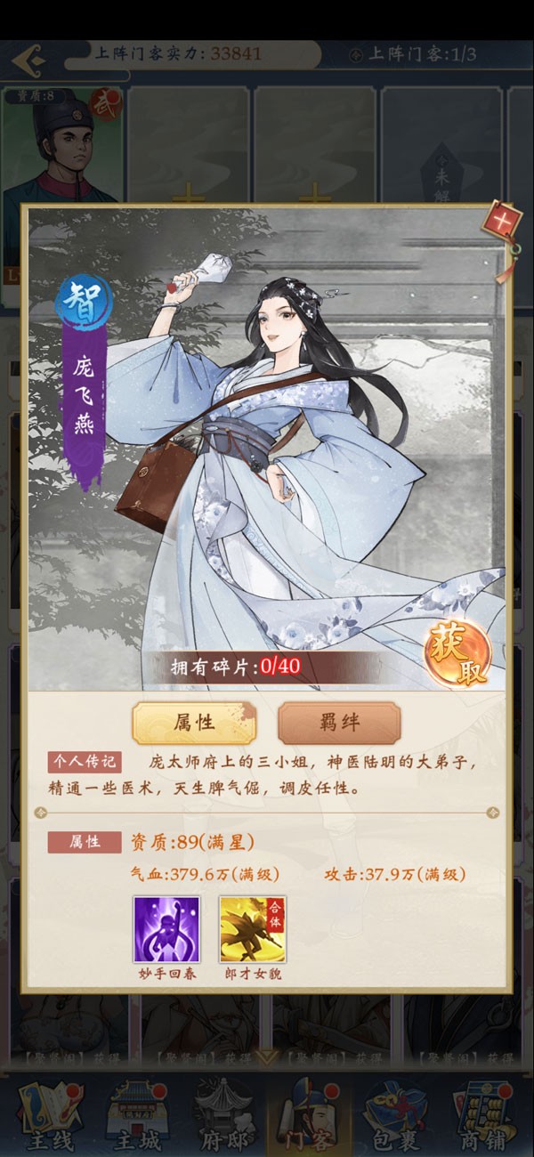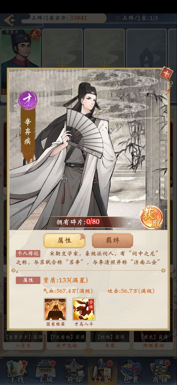 正常橙色门客里,可以围绕府尹包拯去构建搭配上阵。在聚贤阁中兑换的门客,也都互相有羁绊。