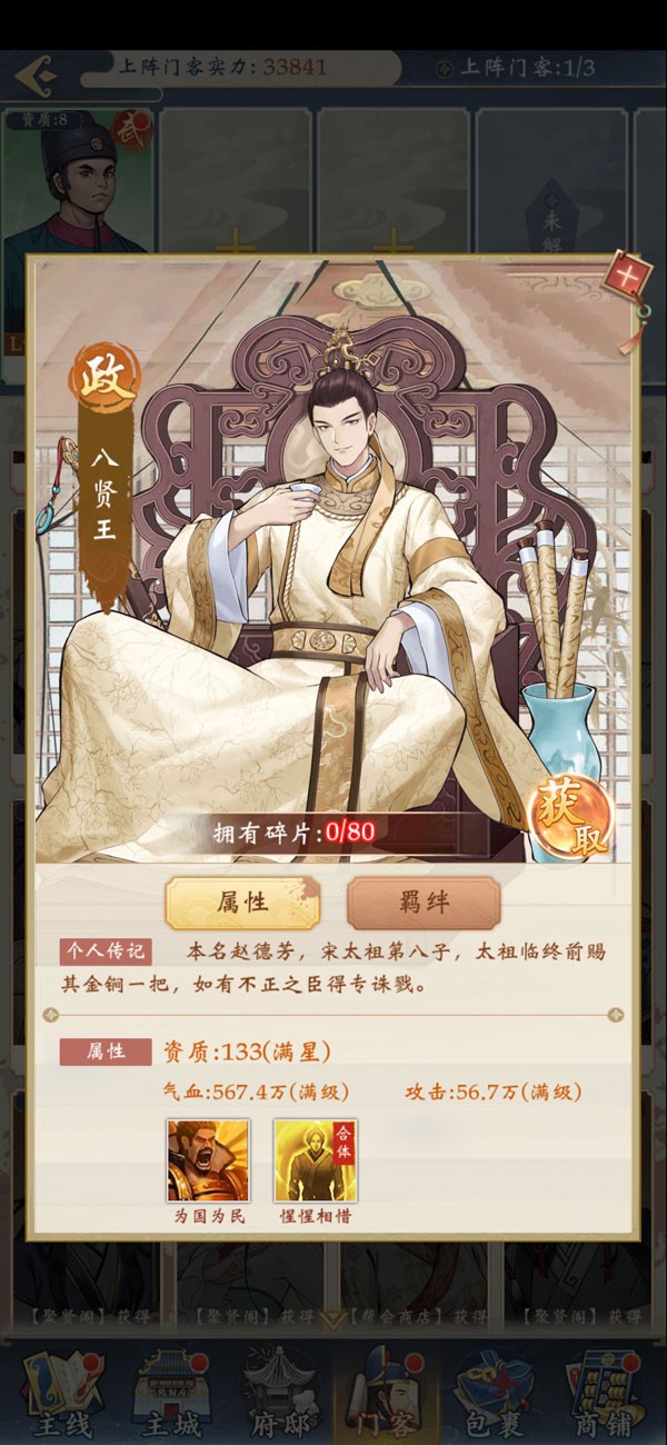 门客升星:可以通过消耗门客碎片来提升星级,从而提升门客资质。