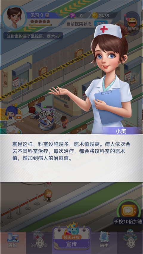 11、之后,玩家需要不断的增加科室增长医术值,增加病人的治愈值。