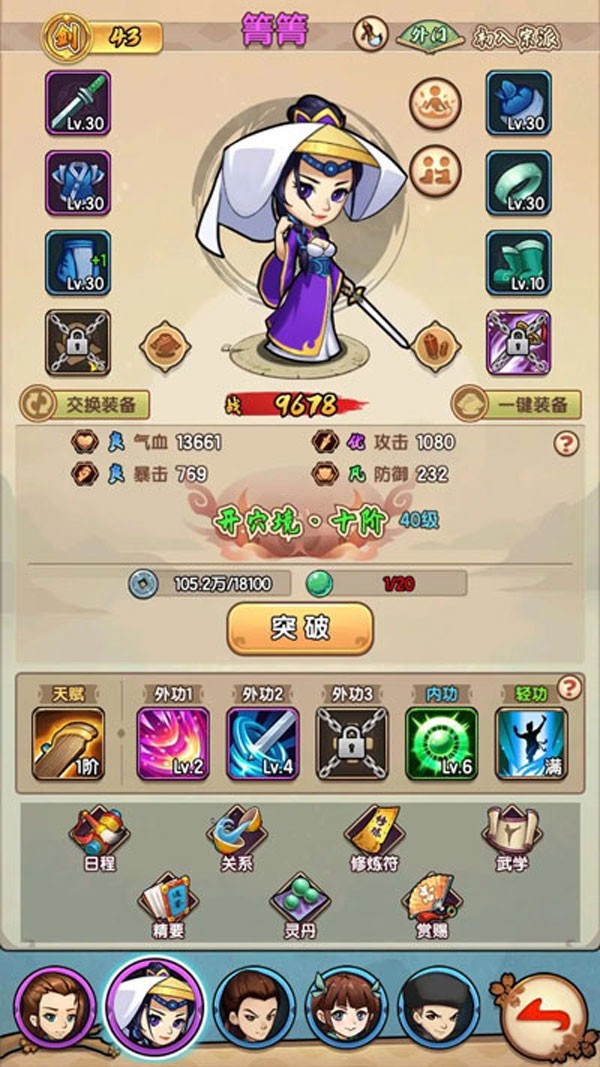 (1)弟子界面:弟子的基本信息以及养成界面。