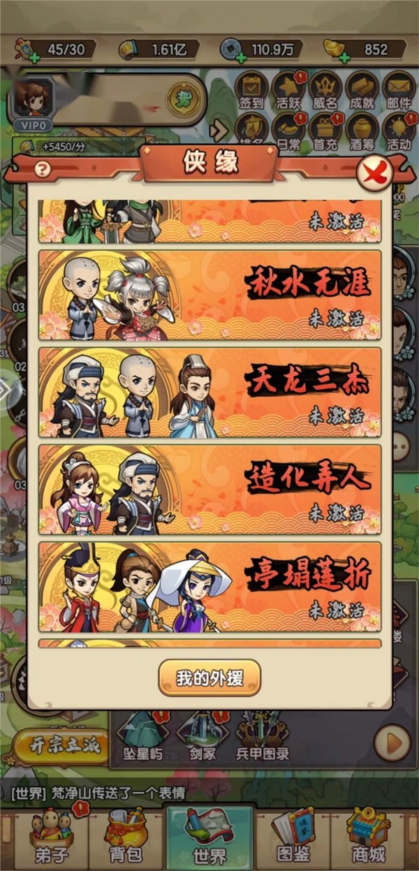 (3)在别的玩家处达成了侠缘关系时,自己派遣的外援弟子不增加任何属性。