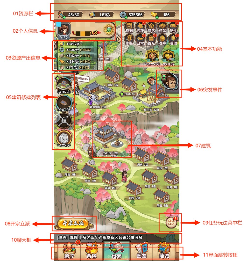 8、开宗立派:通过完成任务获取建设宗门的相应资源,是游戏资源获取的主要途径之一。