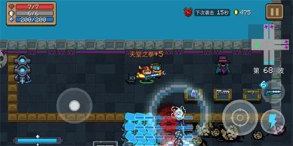 天堂之拳:骑士之拳+闪电法杖。优点:范围大,自带子弹弹射,吃散弹天赋和法杖天赋。对小怪有击退。缺点:打boss慢。