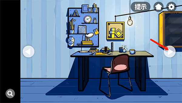 5、进入到主角的房间了,点击左右两边的【箭头号】可以切换房间场景,首先点击右边的箭头,