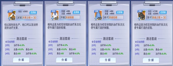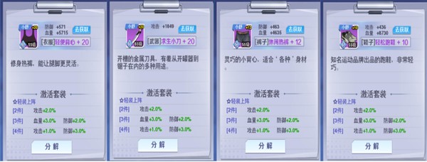 轻装上阵:作为校花学院中最基础的套装,轻装上阵套的均衡属性适用于所有角色,是前期很好的过渡装备。