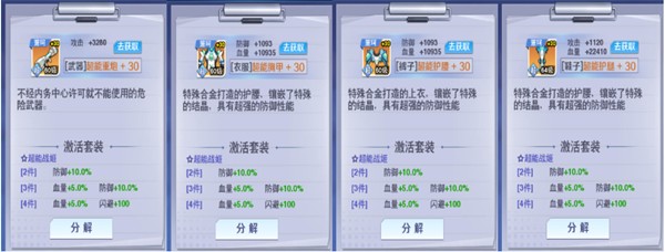 推荐理由:超能战姬套装具备超强的防御套装属性,4件套的闪避值附加搭配宋灵珊本源的闪避值加成,有着极高几率让敌人的攻击化为乌有。