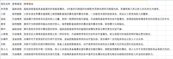 推荐理由:瑶瑶属于前排单体攻坚的核心力量,前排一般拥有较高闪避值,作战精英套装带来的命中值属性,能让其面对防御型前排时输出更加稳定。
