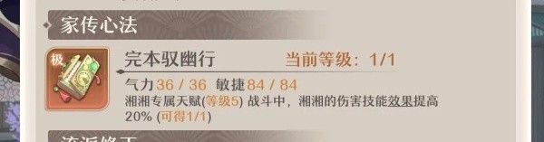书溢出:每层功法的修炼度为100点,每一层功法附赠的词条也是该层100进度时给予的,当整本书所有层数修炼即将完成时,会出现本轮经验溢出的情况,然而功法书的数值获取效率是随着层数上升增加的,所以一本书练到溢出虽然无法获取下一层天赋,但能达到最大数值上的提升。(如下图一本书第1层修炼完获得100点属性,第五层修炼完获得142点属性,溢出部分也按照第五层计算)