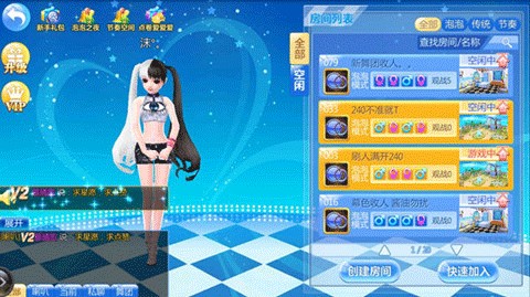 顾名思义,当然是各位舞林高手一展风采,领嗨全场的舞台啦~点击后我们会看到游戏面板上显示玩家所在当前线的房间列表,可以创建房间、搜索房间、加入和快速加入其他玩家的房间。