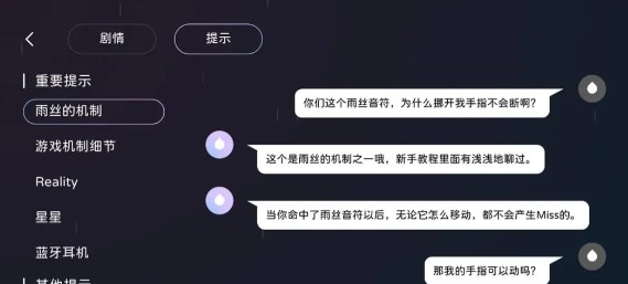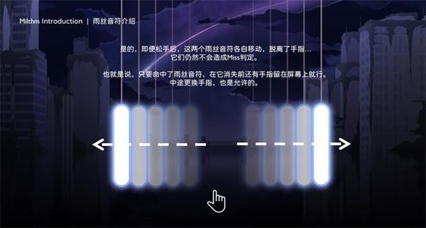 4、当你命中一个雨丝音符后,即使它脱离了手指,也不会造成Miss的判定(除非你松开了手)