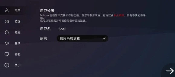 在用户设置模块,玩家可以设置用户名,以及更改语言设置,目前版本提供了中文,繁体中文,英文和日语四个选项以供选择。