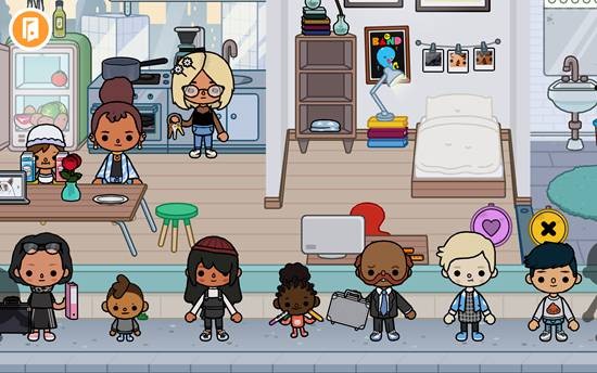 又或者点击左上角的退出房间按钮,去到自己的家中,可以看到也有很多小朋友,点击任何人物或者物品都可以移动。
