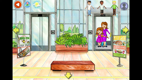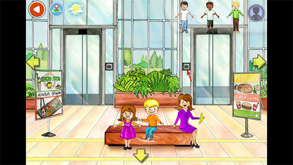 1、首先打开娃娃屋plus,来到电梯口,跟我们现实中一样,点击按钮可以开门;