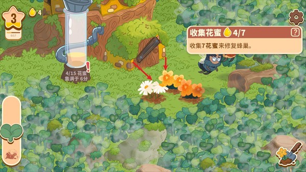4. 与可爱的蜜蜂进行互动,派遣它们执行任务,解锁更多故事情节。