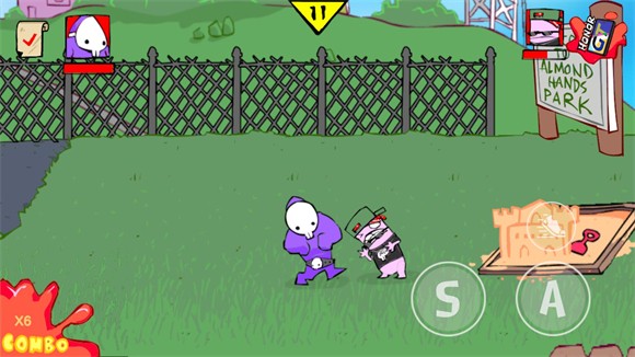 3、点击轻拳和重拳击败当前场景的小朋友就可以前往下一关