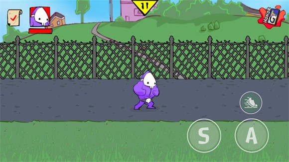 2、游戏界面中左边控制角色移动,右边A键是轻拳,S键是重拳,鞋子图案的时疾跑