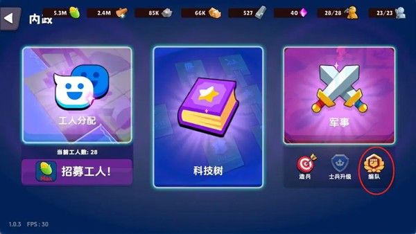 (2)点击科技面板,右下角有造兵按钮,也可以进入造兵界面哦。