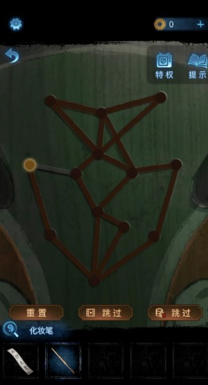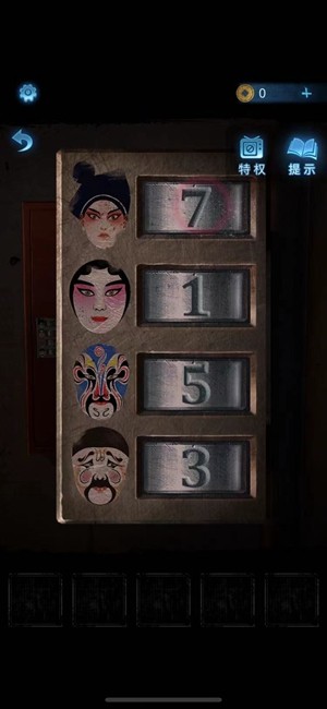 8、前往暗门后的桌上,使用化妆笔蘸取红色颜料把门上的脸谱一笔画完。