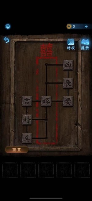 7、再点击座位上的木盒,将文字摆成“奠丧婚吉嫁”后就能开启并获得化妆笔。