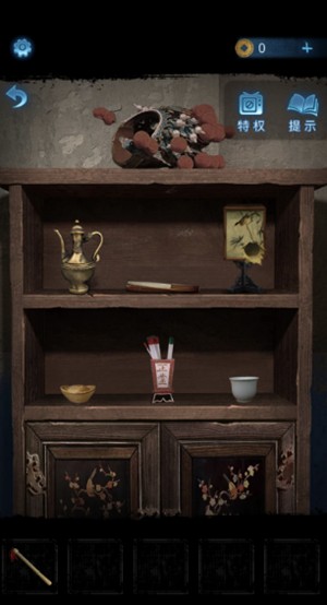 10、进入门后点击桌上报纸即可发现图案,上面还有一个棍子。
