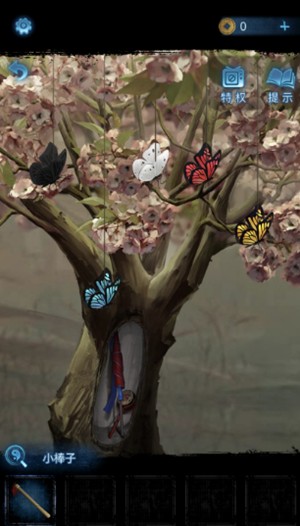 3、在草丛中搜寻找到纸伞,再点击花丛处的蝴蝶获得玉蝴蝶,将玉蝴蝶放在碑上。
