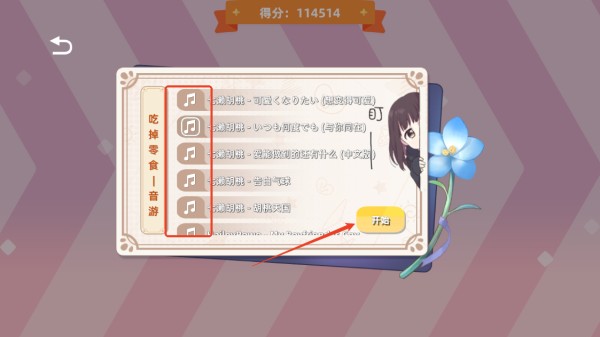 3、如胡桃音游,选定歌曲,点击开始;