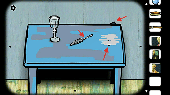6、桌子上的酒勺和桌子右上角的碎片