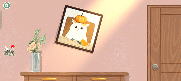5、最后将小猫照片挂到墙上就可以了;