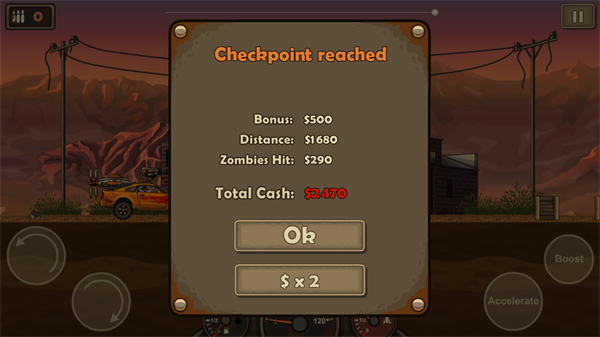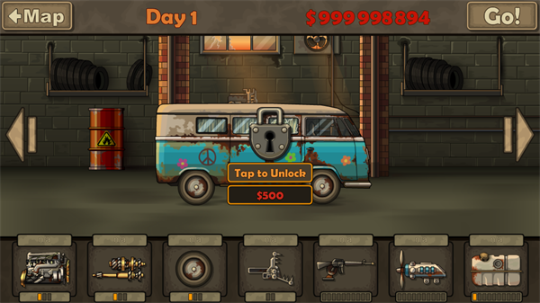 6、你需要使用有限的燃料完成每天的挑战,每次消灭一个僵尸都会得到一定的分数,在关卡中积累的分数越多,获得的奖励也就越多,解锁游戏内容。