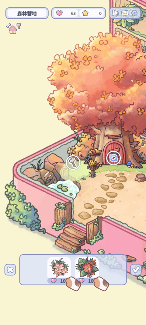 3、点击右下方铲子图标,玩家可给口袋添加建筑装饰;