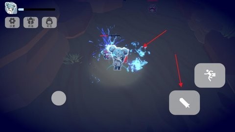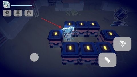 3、移动少女进入大门,靠近怪物,点击右侧按键进行放电攻击,击败怪物,有概率收集怪物掉落的装备或材料;