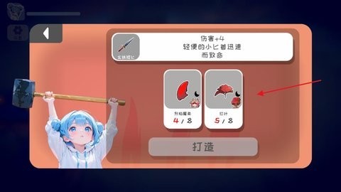 4、收集足够的材料后,可以返回初始之地,将材料铸造成装备,提升少女的战斗力。