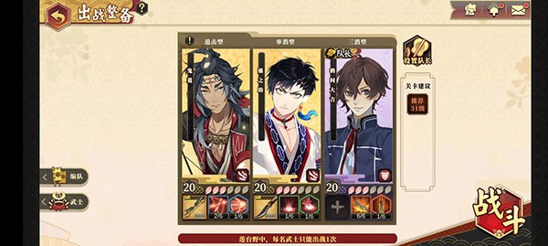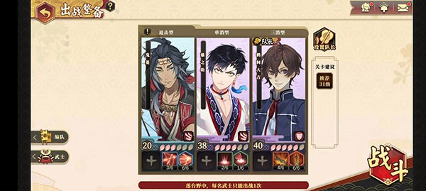 5、武士又可分为攻击、防御、辅助、治疗四种类型,玩家需要根据战斗的实际需求合理搭配武士阵容。