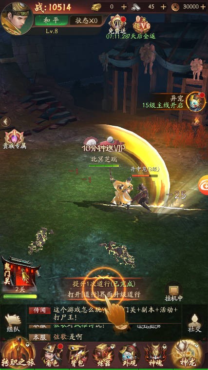 BOSS挑战惊心动魄,尸王、妖狐、邪祟轮番来袭,丰富的副本玩法让你时刻充满挑战,与道友组队共战,体验团战的乐趣。