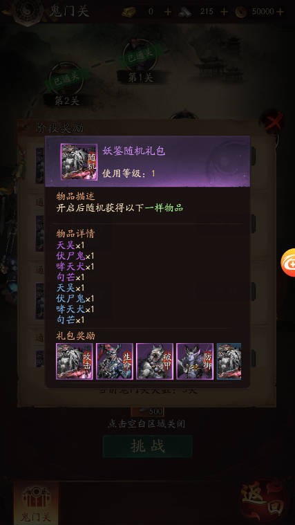 通关掉落初级神君元魄、神通宝箱、八卦牌等材料,有助于神君的养成