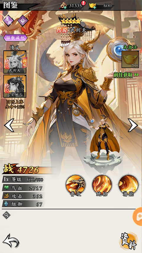 (2)绝招:攻击敌方全体,对其造成108%伤害,本次暴击伤害增加25%,且接下来1回合免疫控制,暴击率增加25%