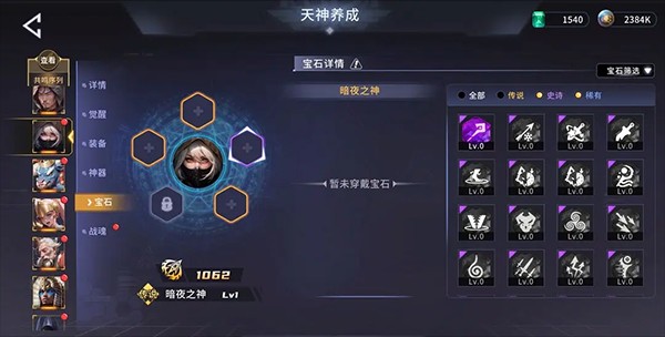 天神除了本身的养成以外,还能进行神器的养成。神器解锁需要对应的天神神器碎片,在支线关卡中可以获得。神器本身能够升级,升级将会增加天神的伤害并且还会增加神器本身的宝石插槽!