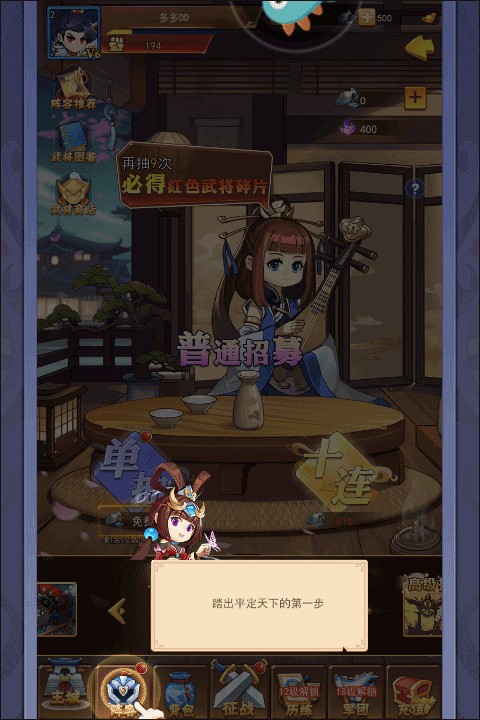 1、运行游戏后,在酒馆招募完武士后,便可以在这里选择并点击“阵容”的选项;