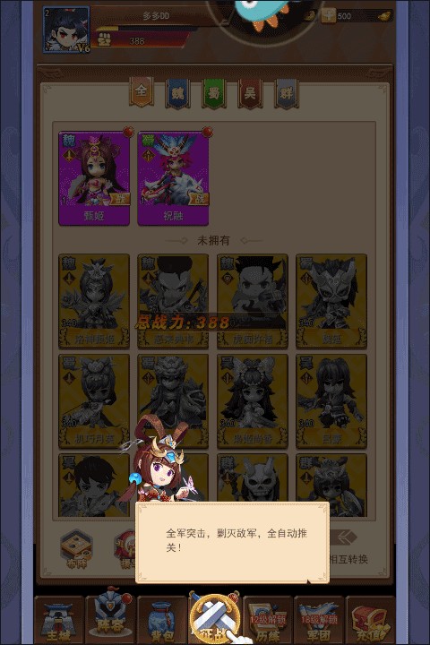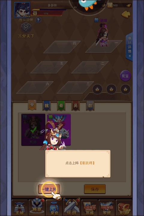 3、这里需要玩家选择并点击“一键上阵”的选项;