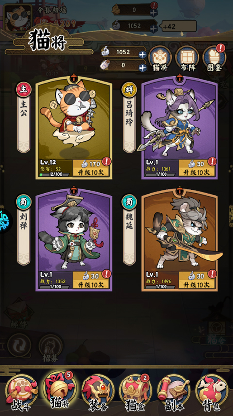 猫狩纪是一款融合了三国题材与猫咪元素的放置挂机卡牌手游。游戏以Q萌画风重塑了经典三国名将,所有角色都变成了可爱的猫咪武将。游戏中,玩家可以招募魏、蜀、吴、群四大阵营的猫将,通过策略搭配阵容推进主线关卡。游戏玩法涵盖了爬塔、竞技场PK和BOSS战,玩家可以通过参加这些模式获取养成资源,提升战斗力。快来猫狩纪收集可爱的猫咪武将吧!