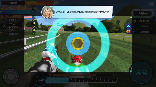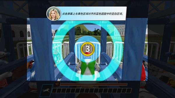 2、在比赛中,你将进入一个必须与马同步的阶段。点击屏幕上与黄色区域对齐的蓝色圆圈中的空白区域。
