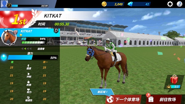 当然,开放牧场只是为了前期提供资金,你的重心应该放在比赛上。接下来,小编带大家前往赛马场,了解赛马的详细规则。