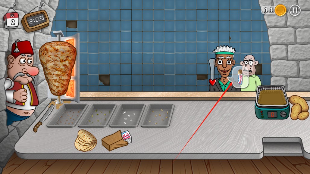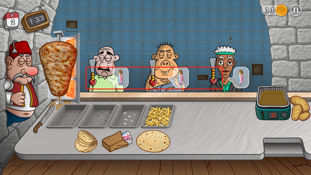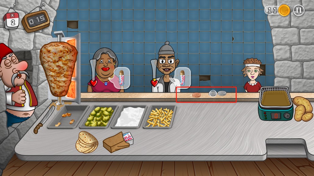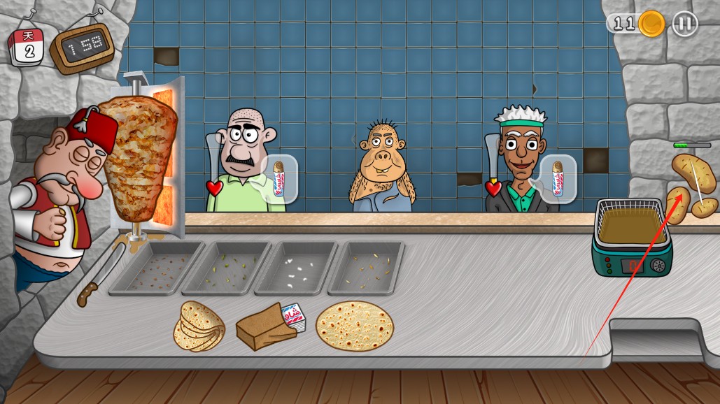 2、玩家需要制作沙威玛,提供给顾客;