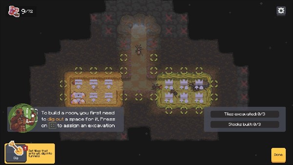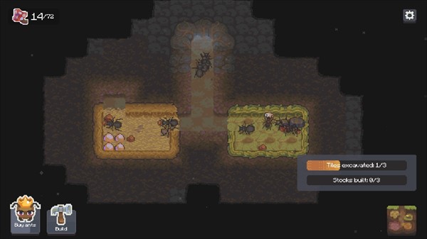 4、然后我们就可以来挖掘附近的土块扩充自己的巢穴了。