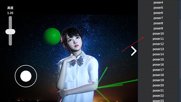 4、姿态内包含几十种POSE可以免费使用,点击相应的pose,左侧的模特就会做出相应的动作。