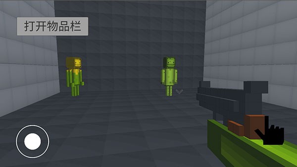 3、进入地图后,点击打开物品栏,玩家可以添加甜瓜人、玉米人、桌子,以及装备手枪、放置炸药等。